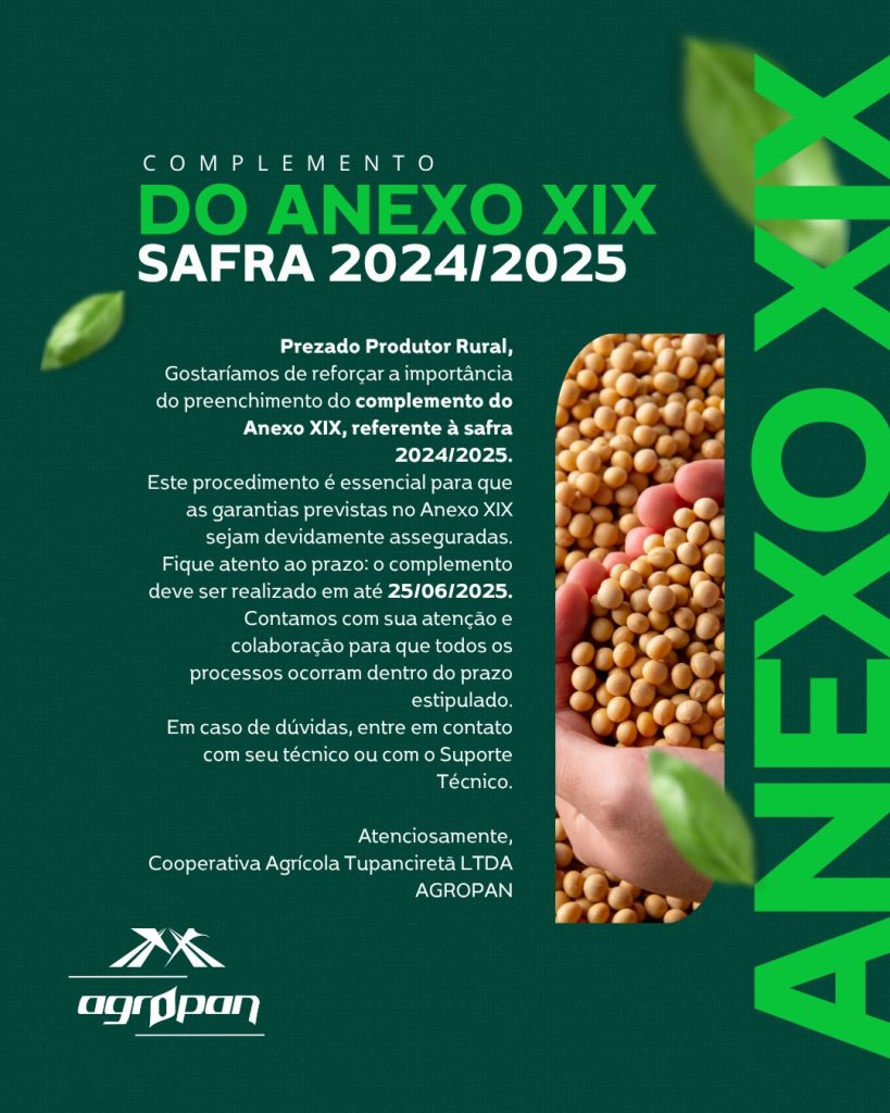 Está aberto o período para o preenchimento do complemento do Anexo XIX, referente à safra…