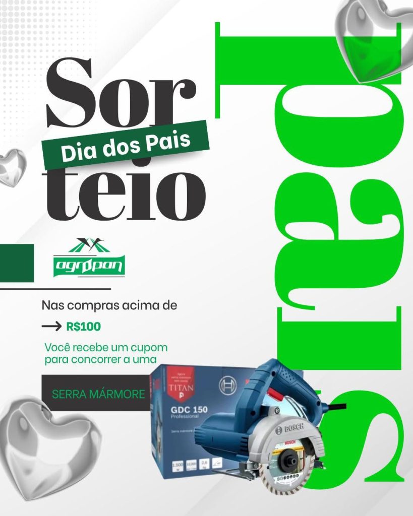 Nas compras acima de R$100, você ganha um cupom para concorrer a uma serra mármore…